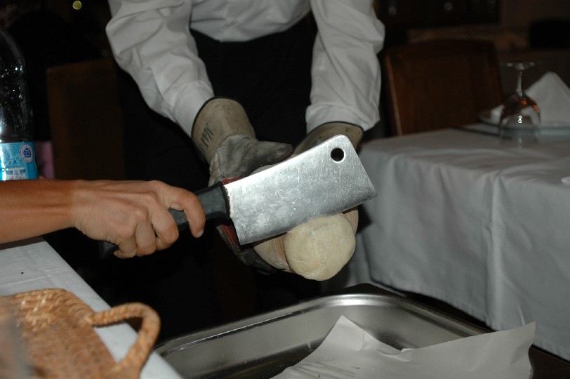 about to break the pottery jar where meat and vegetables have been stewing over a fire. The jar is sealed with bread dough. sur le point de casser le pot en terre dans lequel ont cuit sur le feu viande et legumes. Le pot est referme avec de la pate a pain. |